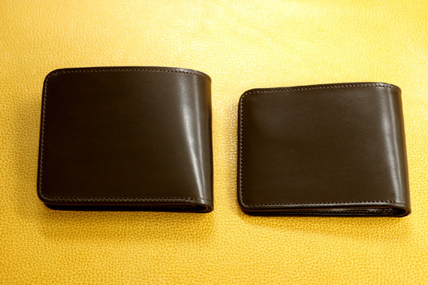 右が従来のWINGSで。左が銀座三越別注バージョンのWINGSです。従来のものは高さが9センチで別注バージョンは9.5センチです。5ミリの違いですが、受ける印象は大きく異なります。