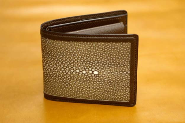 他の革と同じく、ガルーシャも作り方次第・使い方次第で大きく印象が変わり、風合いも異なる革です。キラキラとした鮮やかなアイテムの時期もあったり、渋く存在感を示す時期もあり、変化の仕方が特異でとても面白いです。また堅い様な柔らかい様な質感も独特です。