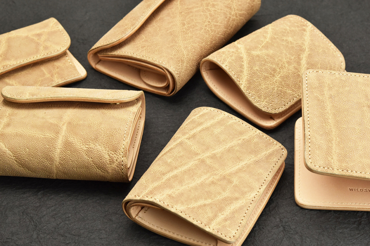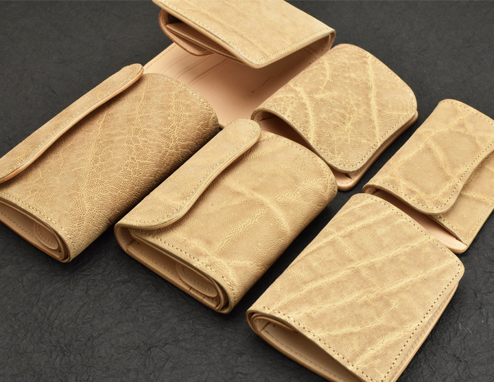 珍しいナチュラルカラーのエレファントレザーを使用した革小物シリーズをご紹介しています。
