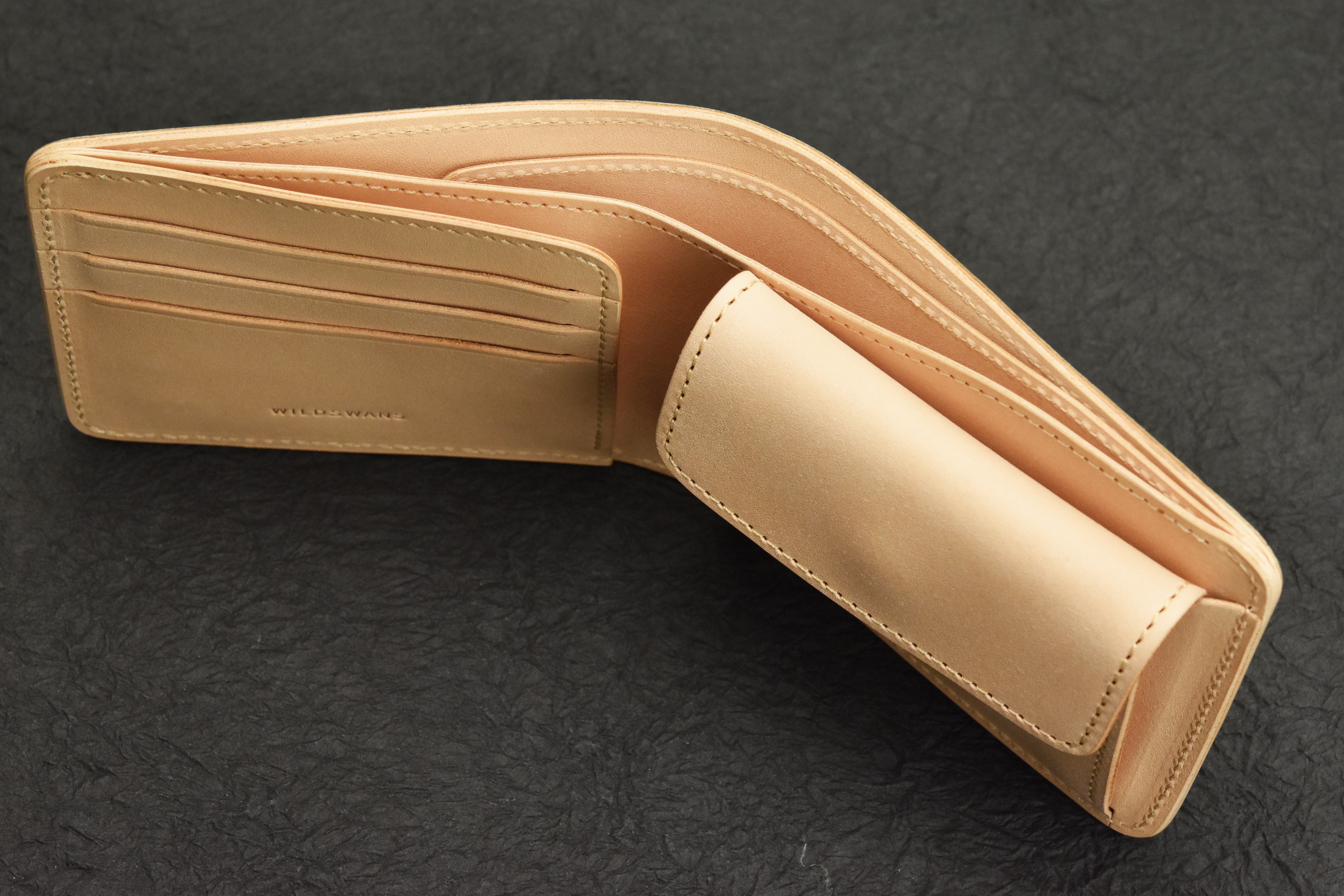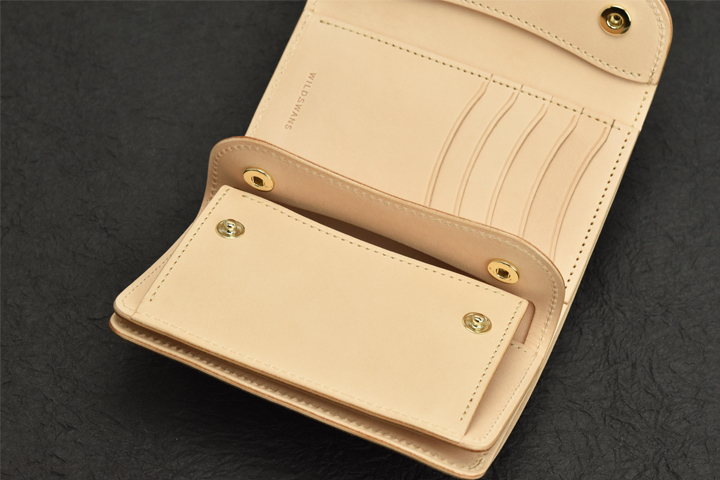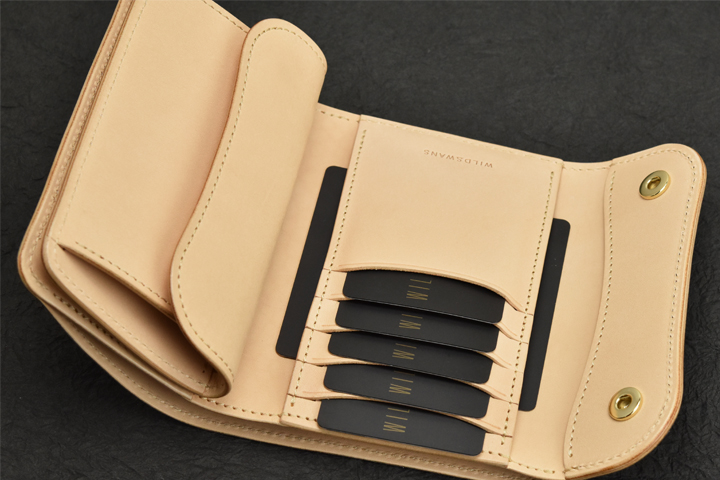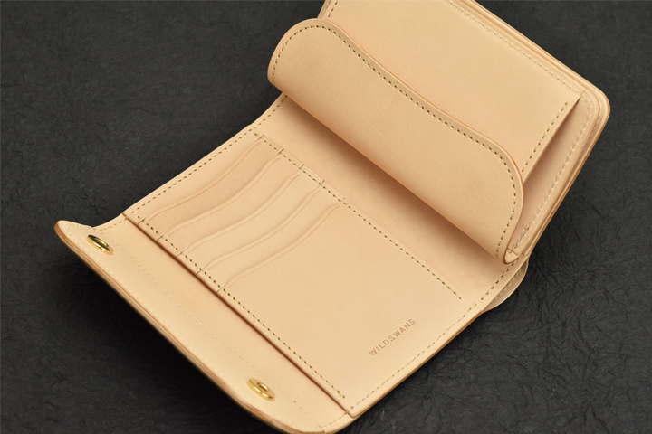 小銭入れの付いた定番の2つ折り財布、GROUNDER。よく目にするようなベーシックなアイテムですが、あおりポケットや可動式の仕切りの付いた札室など、WILDSWANSのエッセンスを加えることで機能性を高めたモデルになります。