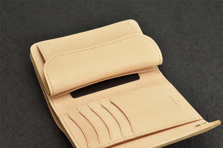 コインケースはフラップ式でケース内部は仕切りパーツが付属するため、カード類を挟み込んで硬貨と分けて収納することが出来ます。