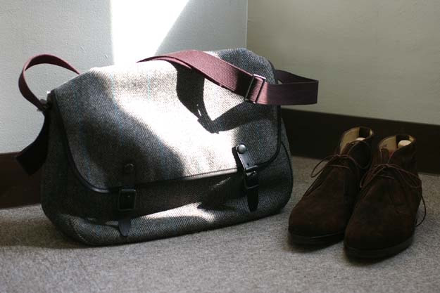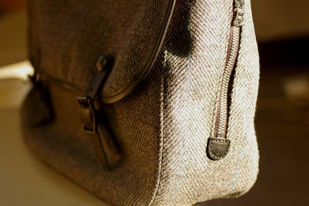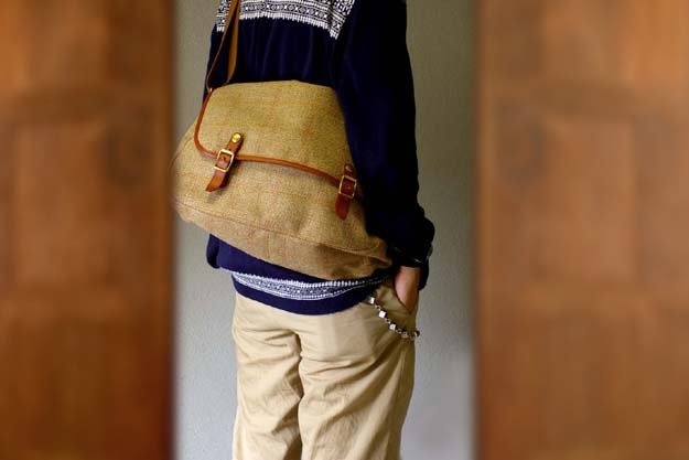 付属に使われている革はイタリアのバダラッシー・カルロ社のミネルバ・リスシオですので素材はやたらと贅沢になってます。ツイード生地同様に、使い込んだ時のヤレ感に期待が大きくなりますね。きっといい味になるでしょう。