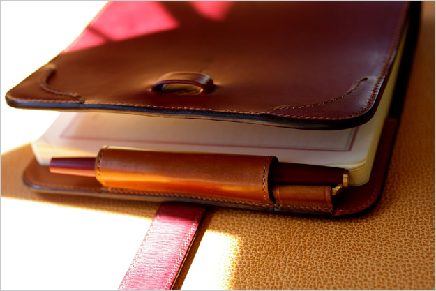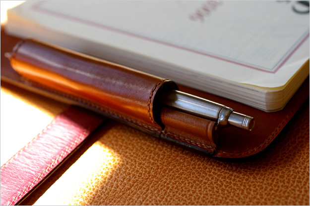 トリノートサイズのADVANCE(L)、エグゼクティブサイズのADVANCE(M)の2型は共通で、メインのペンホルダーの他にサブホルダーが付く仕様になっています。