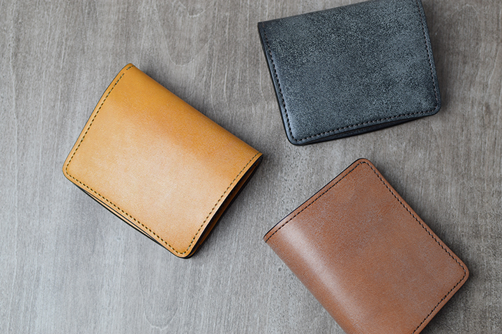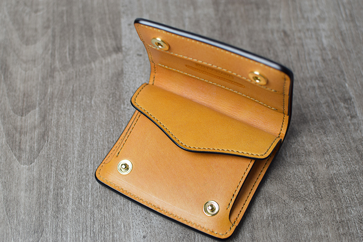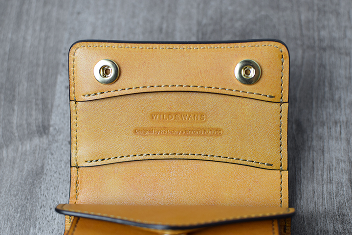 古瀬氏とWILDSWANSが考える機能美を体現したミニ財布のkf-003。フルグレインブライドルレザーを用いたことで、屈強ながらも美しいミニ財布に仕上がりました。