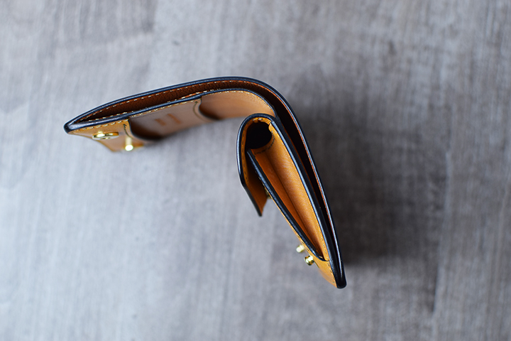 札室は本体の側面に装備しています。WILDSWANSを代表するミニ財布PALMは、携帯性を重視したアイテムであることから、札室が少しタイトなサイズになっていますが、kf-003の札室は一番大きな日本紙幣である一万円札でも余裕をもって出し入れが可能です。