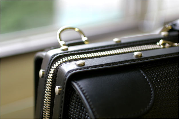 上の写真はもう1つのカラーであるブラックです。チョコレート色とはまた違う趣きがあり、シックで綺麗目な印象の鞄となっています。ブラックの方は色ムラも無く、使い込んでも色の変化は殆どありませんが、光沢は上がっていきますので、より艶のある顔立ちになっていきます。