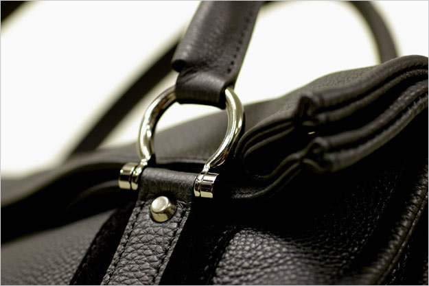 黒光りする金具を使用すると鞄本体の色と同化し良く馴染みますが、それでも静かにギラっと主張するところが黒ニッケルの憎いところです。クールでありながらも重厚な印象の色です。