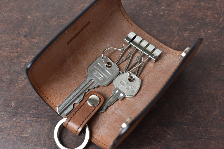また、この2重リングにストラップを通し、鞄のハンドルなどに繋げれば鞄の中で迷子になることはありません。手軽にお使い頂けるため、初めてフルグレインブライドルレザーをご購入頂くお客様におすすめのアイテムです。