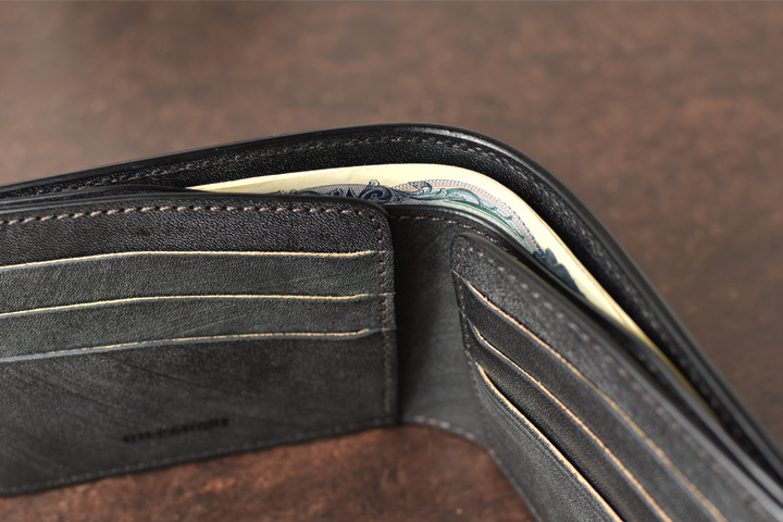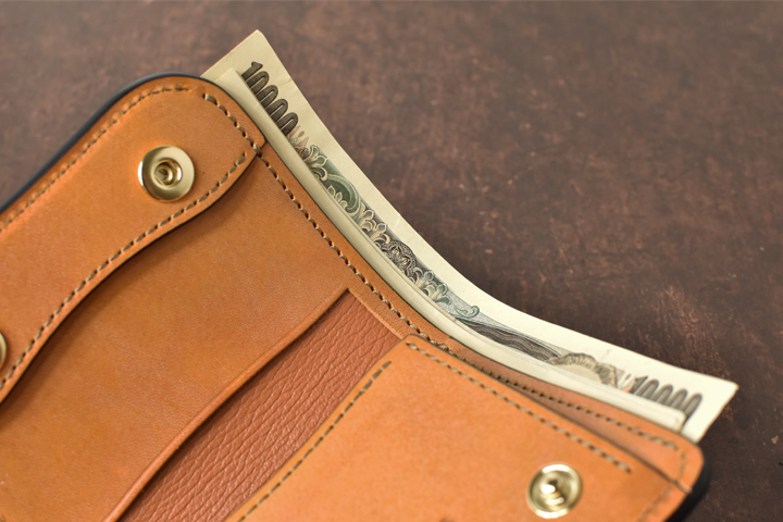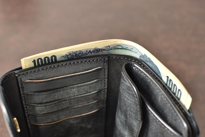 札室は長さ、深さ共に紙幣が余裕で収まるサイズ感のため、沢山の紙幣を入れてもはみ出すことの無い安心感があります。