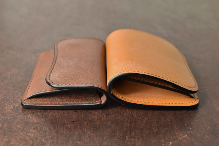 他の財布に比べ薄造りとなっていますが、損傷しやすい角部分に丸みを持たせることにより耐久性も兼ね備えています。この丸みを持たせた造形は、WILDSWANSの様々なアイテムに取り入れられています。
