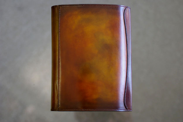 こちらはノートカバーになります。写真では中々お伝えできないのがもどかしいのですが、面積が大きい分、複雑な色と奥行きが特に際立ちます。
