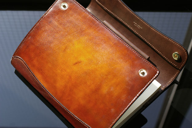 全てのWILDSWANSの革小物ではありませんが、一部の革小物に特別カラーとしてむら染めによる古色が加わることになりました。発売開始は今月の16日頃で、既存の全8型(ノートカバー2種、ペンケース2種、お財布2種、コインケース、長札入れ)を予定しております。