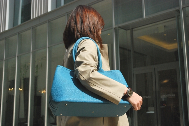 ここからはスタッフが実際に使用中のBel-Air Sをご覧頂きたいと思います。 永くお使い頂いても美しい発色は殆どそのまま褪せることはありませんが、コシのあるハリ感がもっちりとした柔らかさに変化して行くことで、段々とフィット感が上がって行きます。