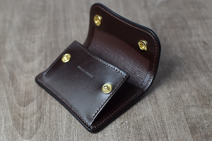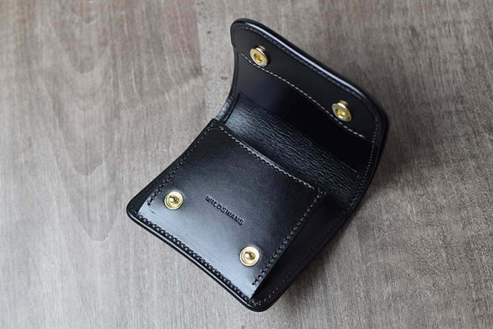 WILDSWANSでは古くから展開しているアイテムの一つですが、近年のミニ財布ブームから高い人気を誇る注目のミニ財布です。内装を覆うフラップは2点のホックで開閉します。