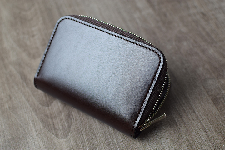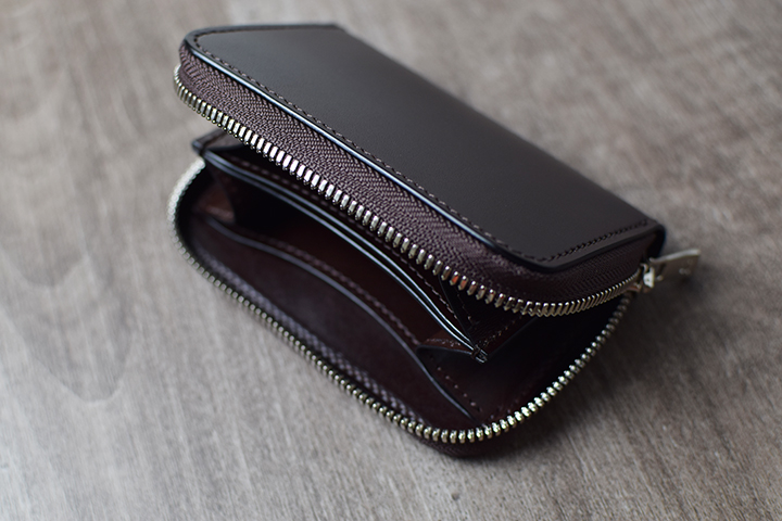 こちらもミニ財布系のアイテムですがWILDSWANSでは少し珍しい、ラウンドファスナータイプのアイテムです。ファスナーパーツ以外で外装に付属するパーツがないため、サドルプルアップの表情もすっきりとした印象に仕上がっています。