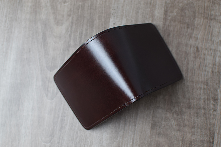 使い始めからどなたにも扱いやすいスタンダードな二つ折り財布のGROUNDERです。先にご紹介したサドルプルアップGENERALと同様に留め具を設けていないので、革が馴染むまでは外装が開いた状態となりますが、1~2年して革が馴染むと少しずつ外装が閉じるようになります。