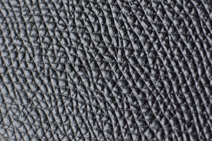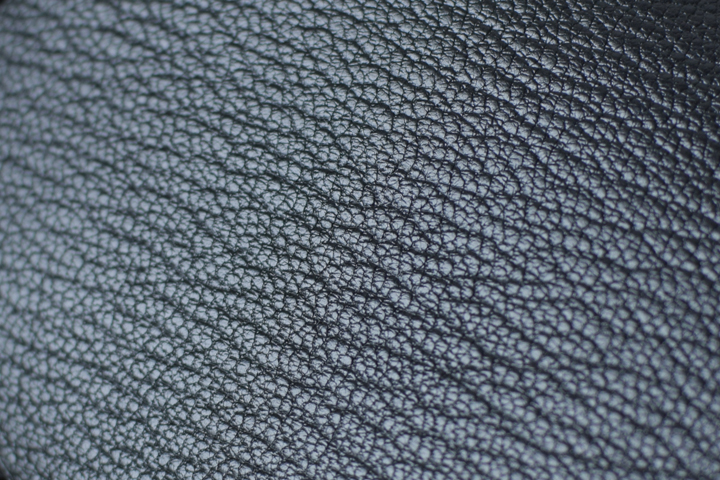 今回のシリーズに用いられるゴートは、数あるゴートのなかでもとりわけ肉厚でコシが強いフランスのメジスリー・ジュリアン社のゴートです。上の画像は裁断前のジュリアンゴートです。山羊と言うと少し華奢(きゃしゃ)なイメージをされるかもしれませんが、こうして一枚の皮革を広げて見るとかなり大きなサイズです。こちらのゴートは、繊維密度が高く強度にも優れていることはもちろんのこと、表面に現れる上品なシボ模様と美しい発色が特徴です。それは、かつてWILDSWANSでも使用された幻の皮革とも言われるクリッパー社のサフィアンゴートを彷彿とさせますが、皮革の厚みを比べるとメジスリー・ジュリアン社のゴートが如何に肉厚であるかが一目瞭然です。