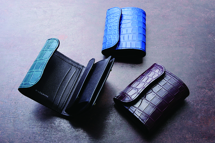 - ●ミニ財布・クロコダイル×型押しサドルプルアップPALM(パーム)・・・60,500円(税込)