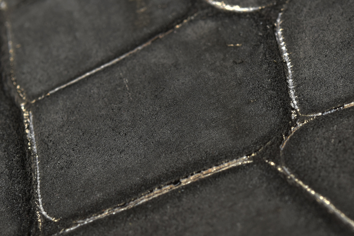 強制的に変化した状態を作り出しているために必ずしもこうなるという例ではございませんが、使い込まれ表面が滑らかになることで光沢を帯びる様子をイメージして頂けるかと思います。