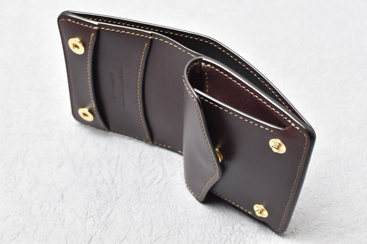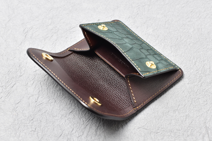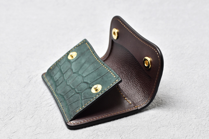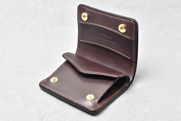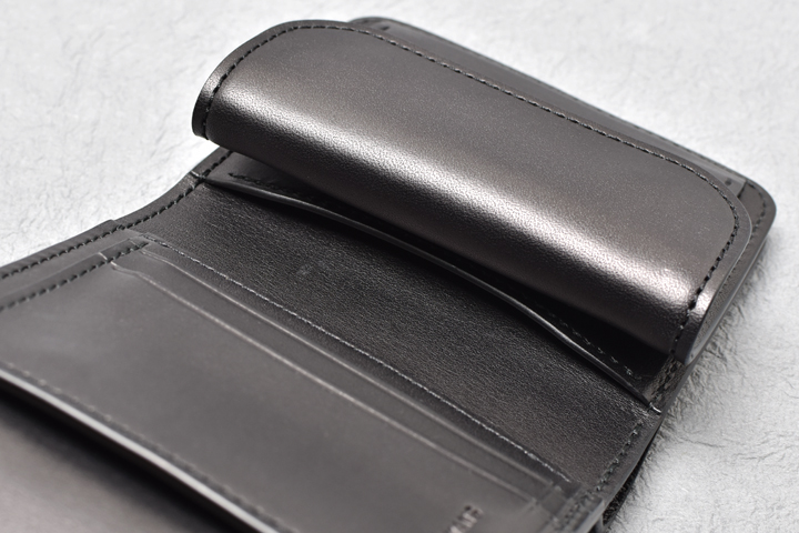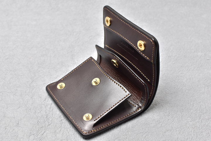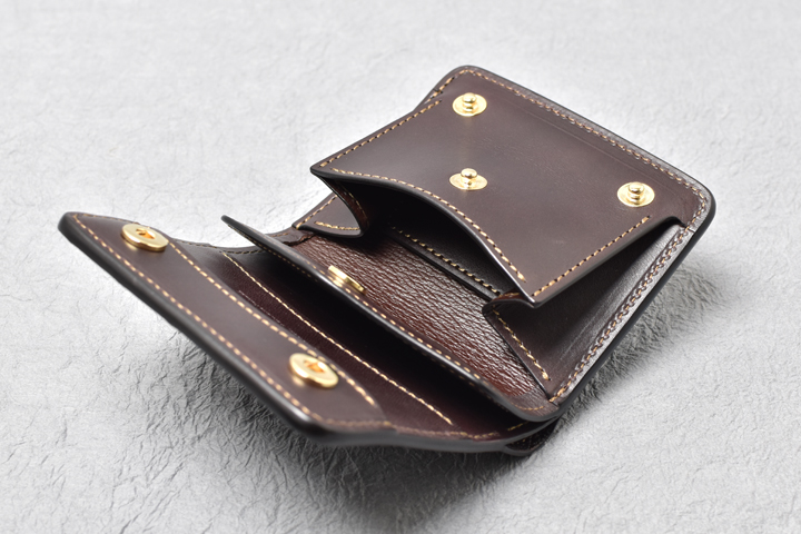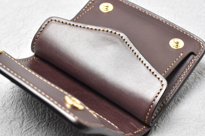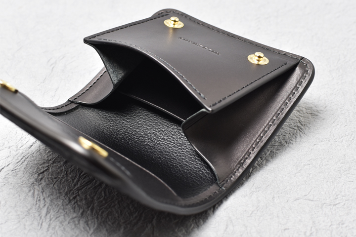 コインケースは左右にマチの付いた形状で、大きく開くために出し入れもしやすく、細かい硬貨の選り分けも苦になりません。