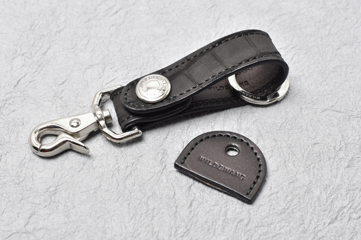 頑強な金具と革で組み上げたキーホルダーで、複数の鍵をまとめて持ち運ぶことが出来ます。 縫製やコバの処理など細部までしっかりと作り込まれており、小さくてもしっかりとWILDSWANSらしさを感じることの出来るアイテムです。