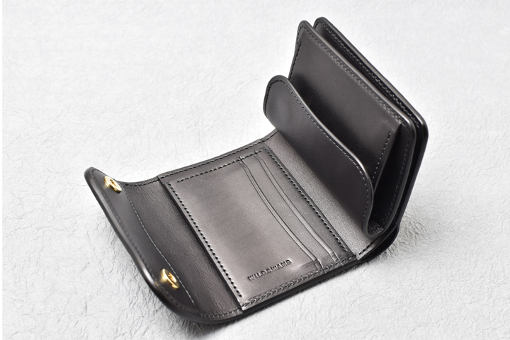 どこか愛嬌のある丸々としたフォルムが印象的な3つ折り財布です。 コンパクトにまとまっていますが収納量は高く、小さくても頼りになるモデルです。