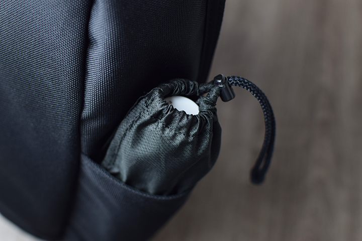 収納物の飛び出しや上部が見えることに抵抗がある方は、巾着型のストッパーで収納物をホールドすることも可能です。